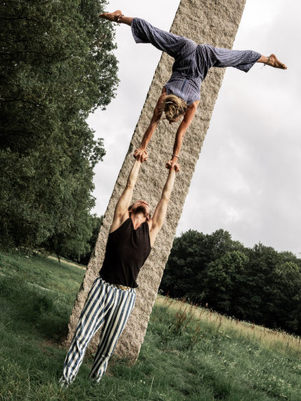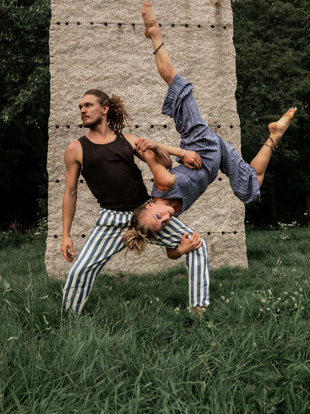 Bij ons draait partner acrobatiek niet alleen om vaste shows, maar ook om dynamisch 'walk-around' entertainment dat op festivals en andere evenementen tot leven komt.